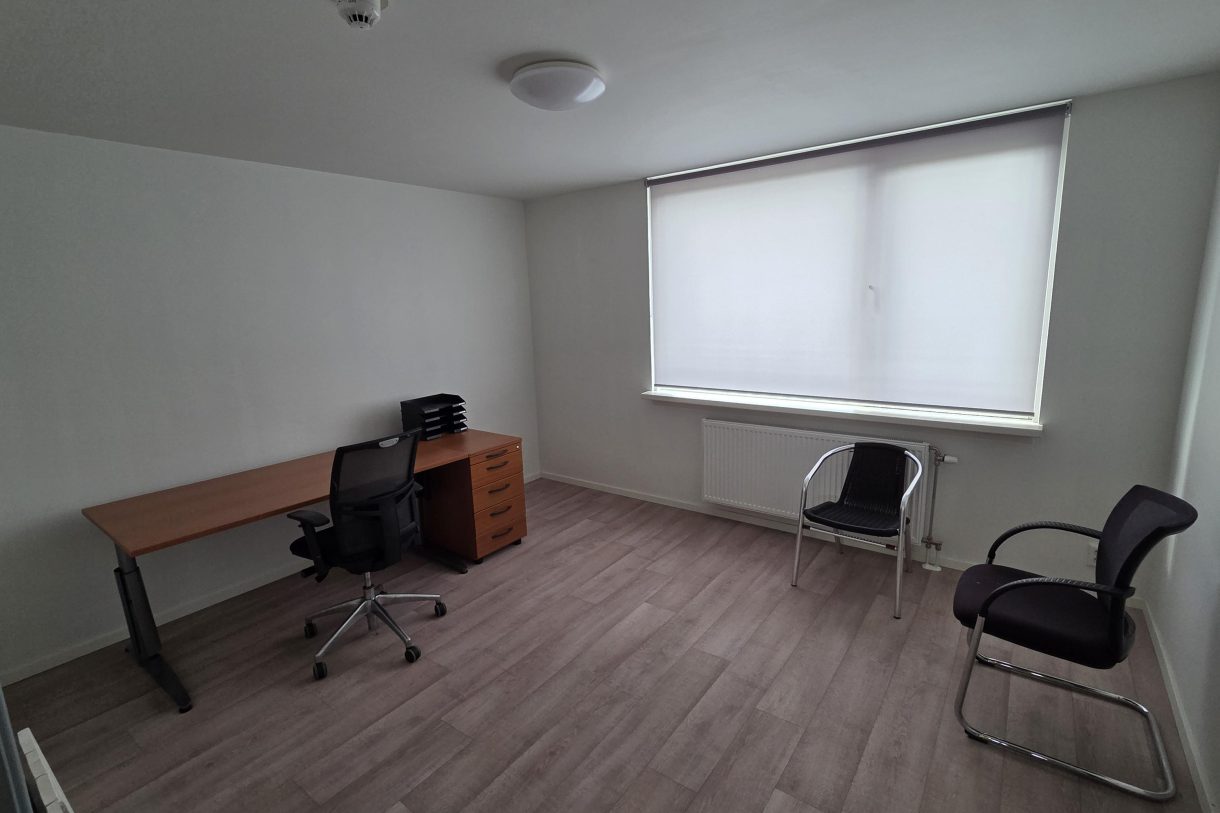 Het betreft een keurige kantoorruimte op de eerste verdieping van in totaal ca. 131,5 m². Het kantoor is onderverdeeld in een grote vergaderkamer en 4 aparte kantoorruimtes. Alle vloeren zijn voorzien van laminaat.