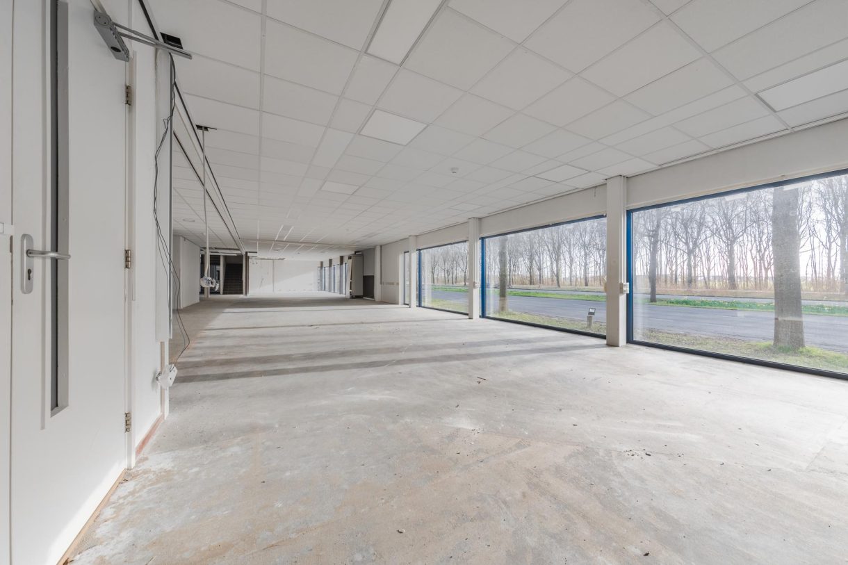 De bedrijfsruimte wordt gekenmerkt door een hoogte van 3.67 meter en heeft grote ramen aan de voor- en achterzijde. Verwarming geschiedt via radiatoren en uiteraard zijn voorzieningen als elektra, krachtstroom en verlichting in ruime mate aanwezig. Naar eigen wens is de indeling, net als die van de kantoorruimte/showroom, aan te passen.