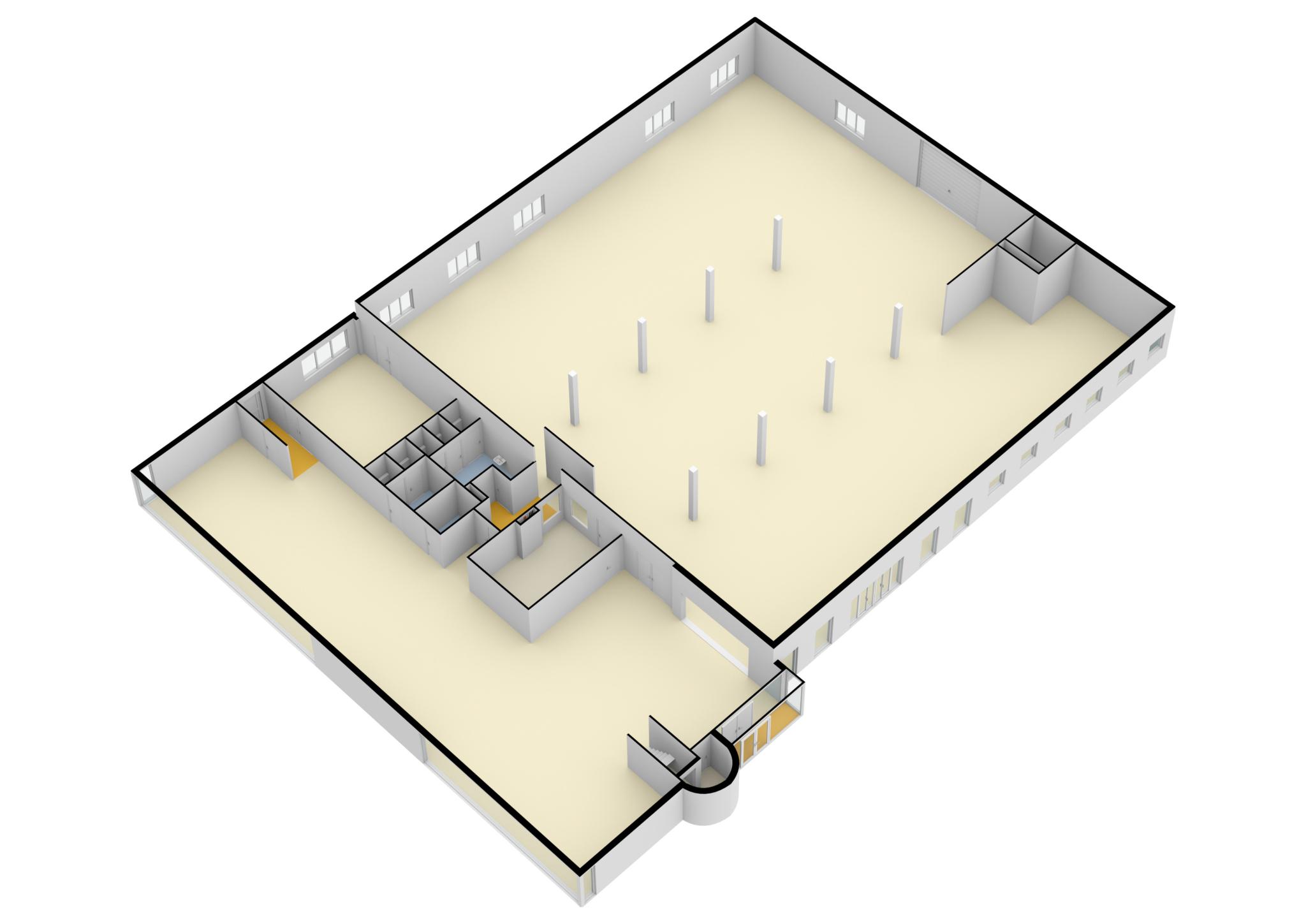Via het parkeerterrein aan de voorzijde loopt u naar de entree van dit representatieve, multifunctionele bedrijfspand. De entree geeft toegang tot de tochtsluis, die in verbinding staat met de kantoor-/ontvangstruimte. Deze ruimte is ook zeer geschikt als showroom. Grote ramen zorgen voor veel lichtinval en bij de entree ziet u het trappenhuis met de hoge vide.