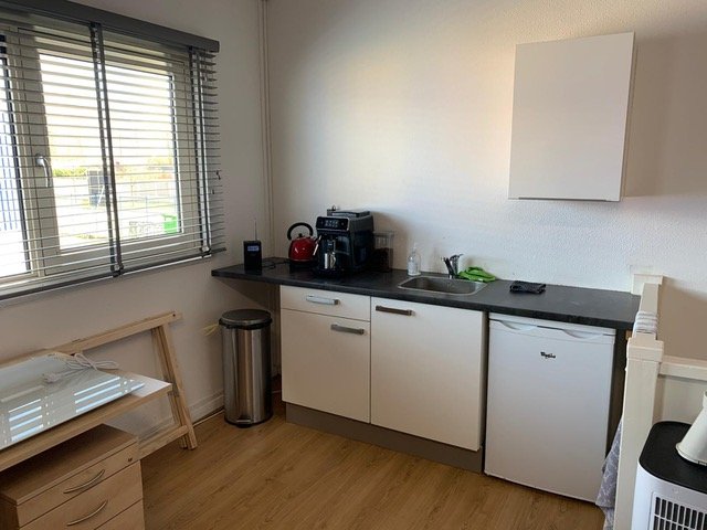 Ingericht als kantoorruimte met een pantry en voorzien van laminaat vloer.