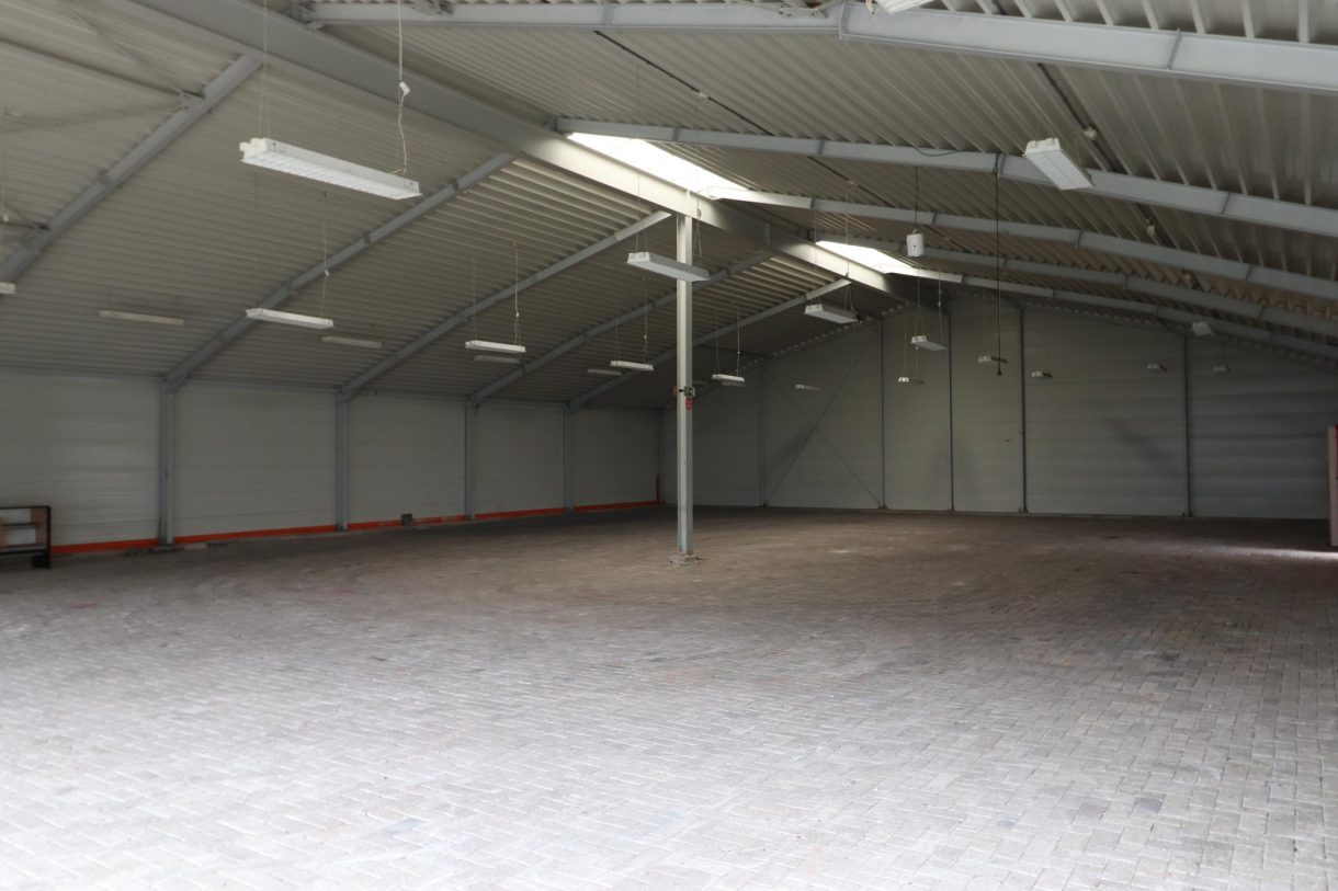 Het pand beschikt over een ruime hal met een grote overheaddeur (4,0 x 4,2 meter) en is volledig voorzien van een klinkervloer. Daarnaast biedt het een groot buitenterrein van ca. 800 m², ideaal voor opslag of parkeren op eigen (afsluitbaar) terrein.