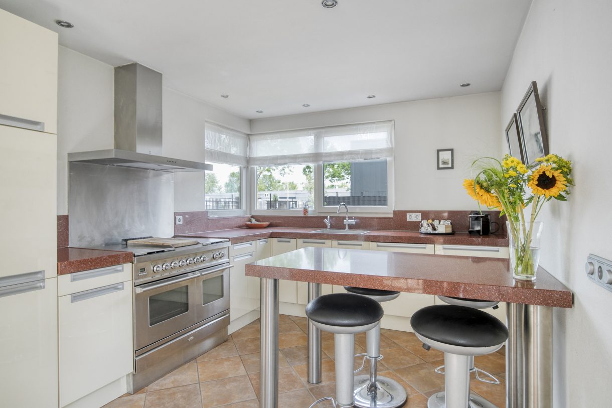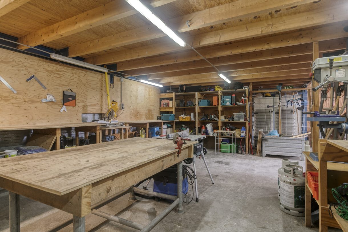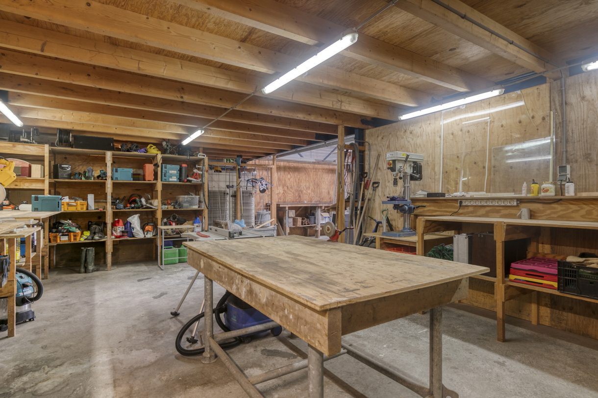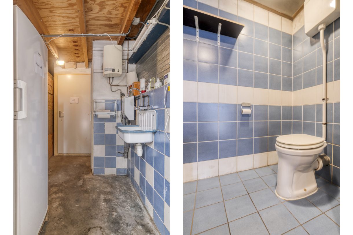 Er is een bijkeuken aanwezig met spoelbak en schuifwand met daar achter een mobiele bergkast en plaats voor de wasmachine en droger. Hier is ook de opstelling voor de cv ketel en hybride warmtepomp.