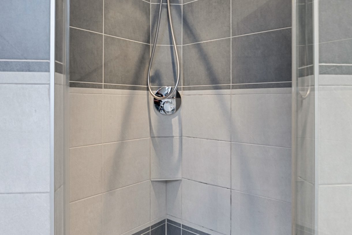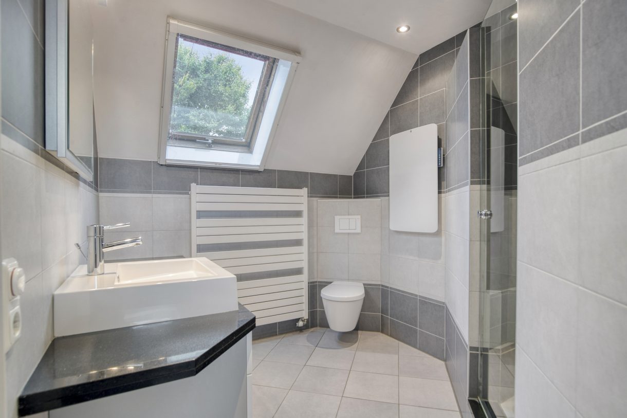 Op de eerste verdieping zijn er 3 grote slaapkamers (waarvan 2 met airco) met inbouwkasten en een luxe badkamer met elektrische vloerverwarming, wastafelmeubel, toilet en douchecabine. Via de vlizotrap is nog een ruime zolder bereikbaar met veel bergruimte.