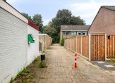 De grote woonkamer is in U-vorm en tuingericht. Via de loopdeur bereikt u de diepe achtertuin op het zuiden, waar het heerlijk toeven is. Hier vindt u een ruim terras, een achterom én een royale houten overkapping. Tevens staat hier een vrijstaande fietsenberging.