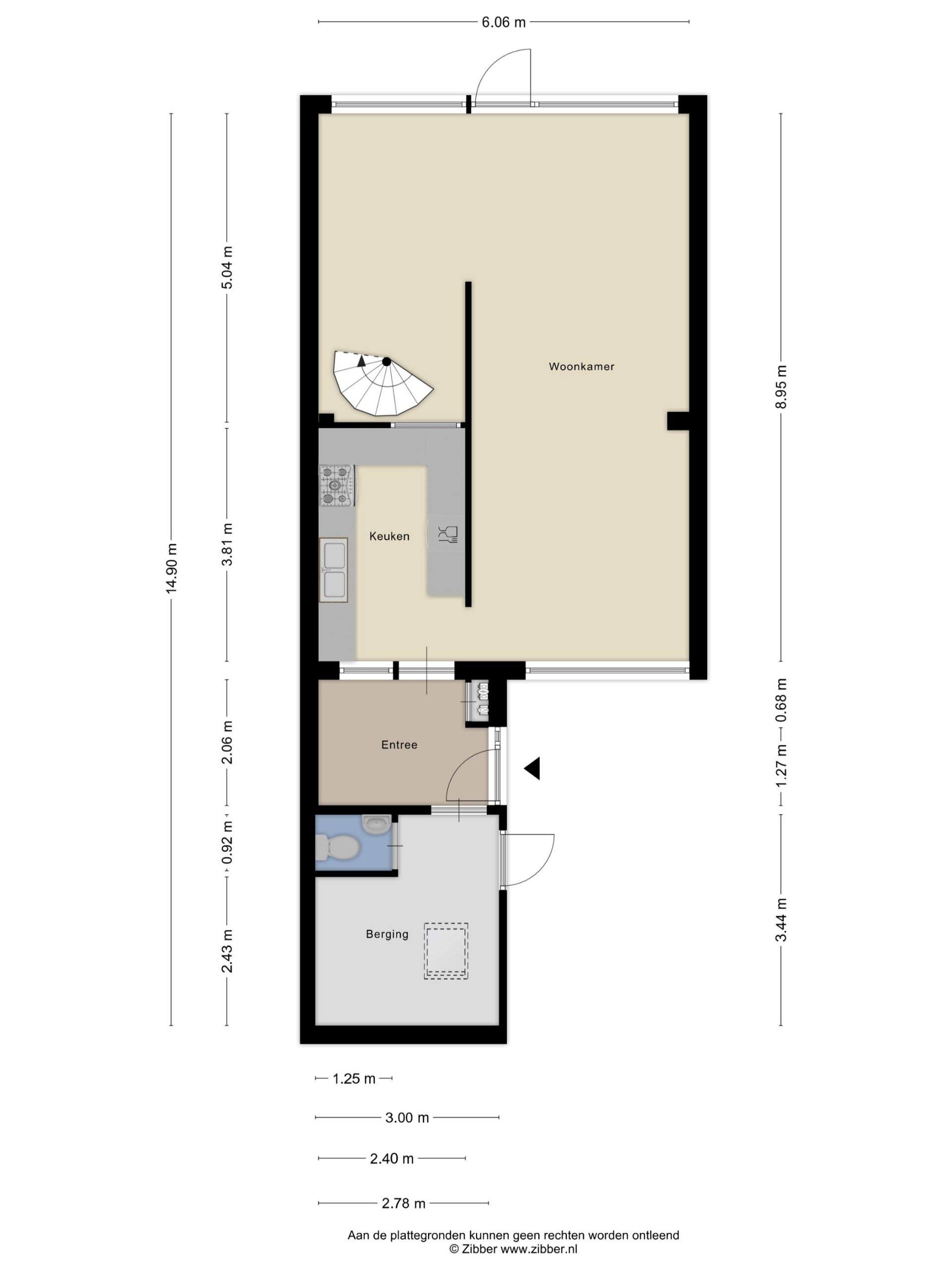 U komt binnen in de hal met meterkast, toiletruimte en doorgang naar de lichte woonkamer. Aan de voorzijde bevindt zich een berging. De half open keuken aan de voorzijde is opgesteld in een U-vorm en voorzien van diverse inbouwapparatuur: een 4-pits gaskookplaat, afzuigkap, oven, vaatwasser, koelkast en wasmachine aansluiting.
