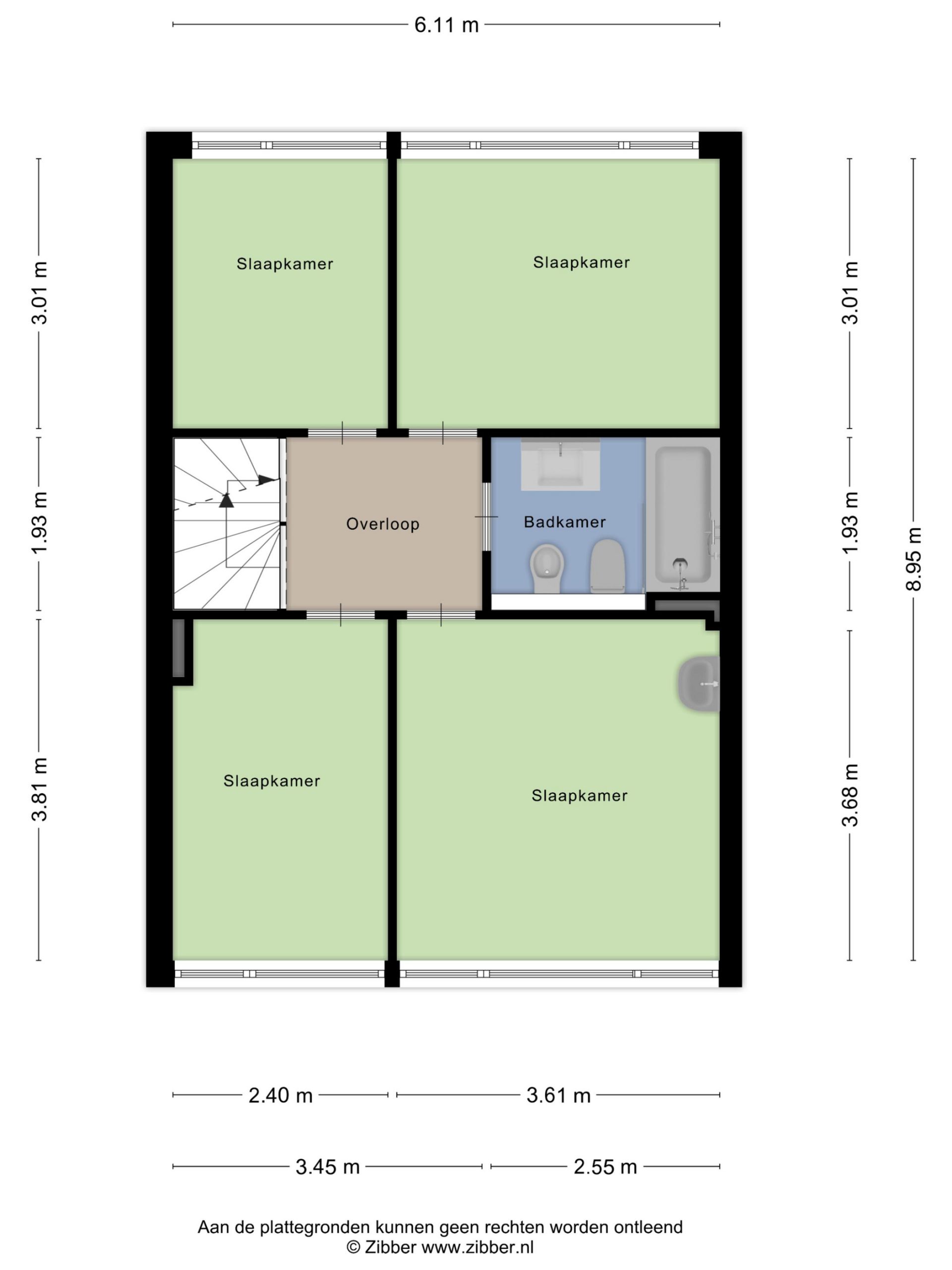De overloop geeft toegang tot vier goed bemeten slaapkamers, allen voorzien van kunststof kozijnen met dubbel glas. De badkamer is compleet uitgerust met een ligbad, zwevend toilet, bidet en wastafelmeubel.