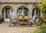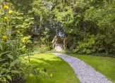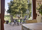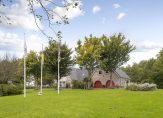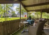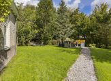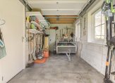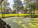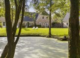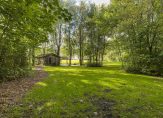 Buitengebied: De tuin is royaal opgezet en waarborgt volledige privacy, met panoramisch uitzicht over het omliggende landschap. In de achtertuin ligt een grote vijverpartij, met een sfeervol tuinhuis op een bordes deels in het water – met elektra. De vijver is eenvoudig aan te passen tot natuurlijke zwemvijver. Een aangelegd schelpenpad met verlichting slingert door de tuin langs diverse zitplekken in zon of schaduw.