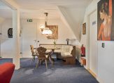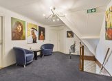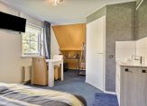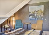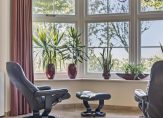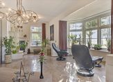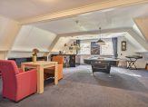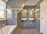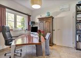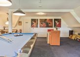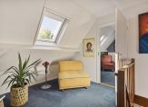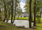 Royale overloop, 3 ruime slaapkamers waarvan 1 met balkon op het zuiden, een tweede badkamer met ligbad, douche, dubbele wastafel en toilet. Via de tussenoverloop komt u in de ander vleugel van de verdieping. Hier bevindt zich een multifunctionele ruimte (momenteel ingericht als biljartruimte met bar) en een extra slaapkamer met prachtig uitzicht op de vijverpartij, voorzien van eigen douche, toilet en wastafel.