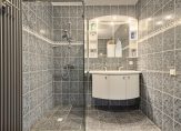 Verder vindt u op de begane grond een luxe badkamer met ligbad, inloopdouche en dubbele wastafel een zeer ruime master bedroom, en een inpandige dubbele garage voorzien van 2 elektrische deuren en een loopdeur. De gehele verdieping (met uitzondering van de slaapkamer en garage) is voorzien van een gepolijste granieten vloer met comfortabele vloerverwarming.