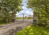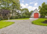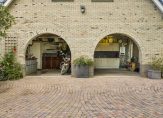 De oprijlaan, bereikbaar via een elektrische toegangspoort met marmeren details en brievenbus met verlichting, leidt naar vaste parkeerplaatsen welke ook weer zijn voorzien van verlichting. Naast de woning staat een extra hoge garage (gebouwd in 2005), perfect voor een camper of boot. Ook deze is voorzien van elektrische roldeuren en een aparte berging. Deze garage kan eenvoudig worden omgebouwd tot mantelzorgwoning.