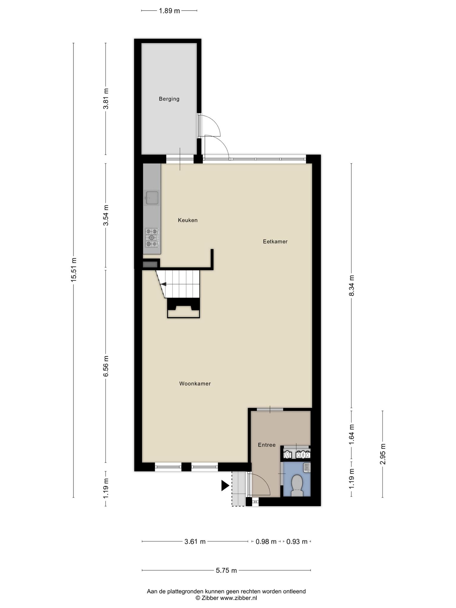 Entree, hal met meterkast en toilet met fonteintje. Gezellige straatgerichte woonkamer met open haard en trapopgang. De halfopen keuken is voorzien van een eenvoudig keukenblok en geeft toegang tot de aangebouwde berging én via daar de zonnige tuin.