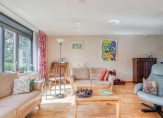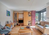 Vanuit de hal komt u in de straatgerichte woonkamer, waar het licht volop naar binnen schijnt. Aan de tuinkant van de woning vindt u de halfopen keuken. Via de keuken of de achterdeur in de garage bereik je de diepe tuin op het oosten – perfect voor een ontspannen ontbijtje in de ochtendzon. De grote garage is ideaal voor de fietsen, gereedschap of om lekker te klussen.