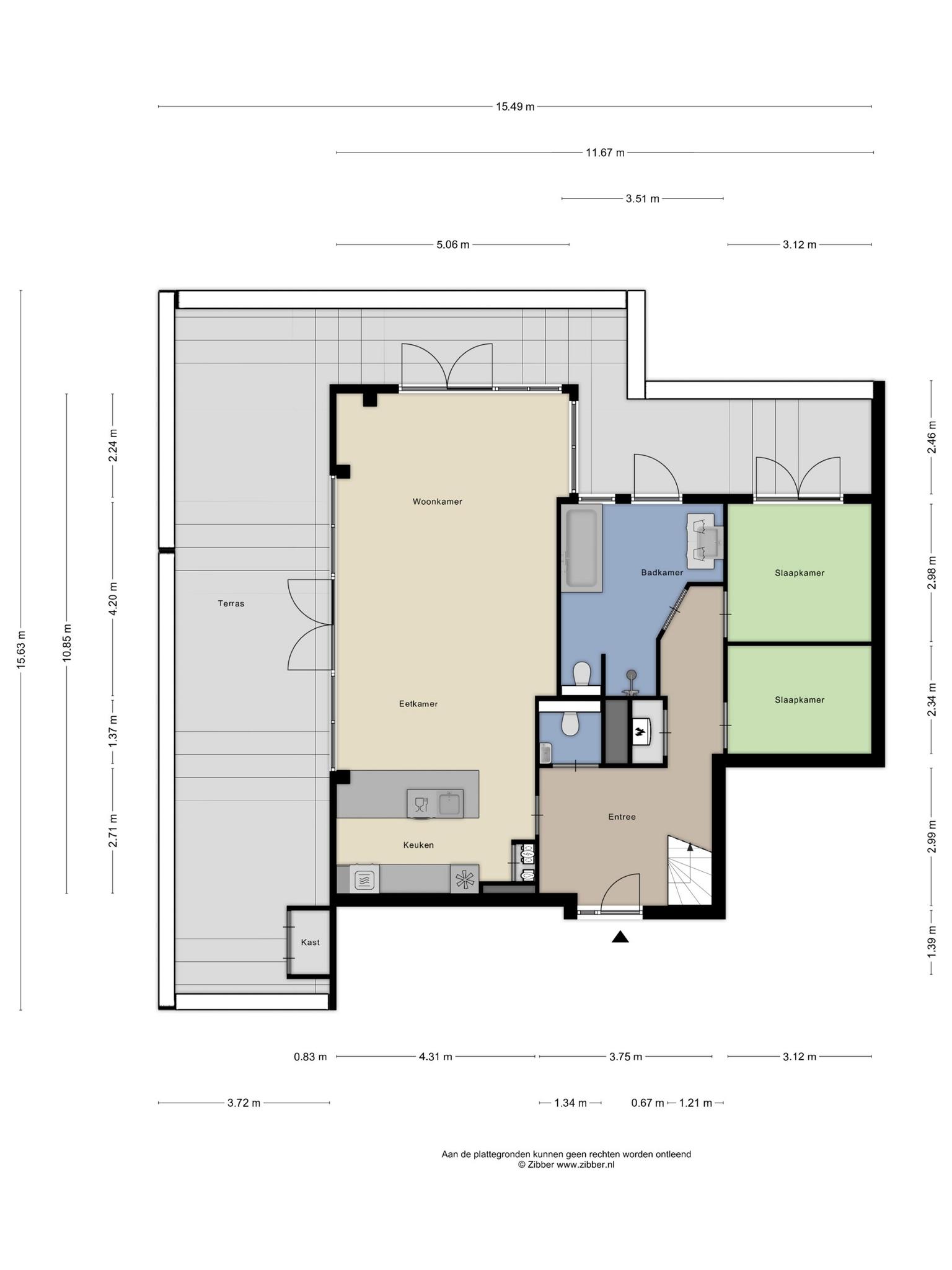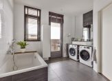 Twee slaapkamers, waarvan één met directe toegang tot het dakterras. Beide kamers zijn ook voorzien van een pvc vloer. De moderne badkamer heeft alles wat u nodig heeft: een ligbad, inloopdouche, zwevend toilet en een wastafel met daaronder aansluitingen voor de wasmachine en droger. Ook vanuit de badkamer heeft u toegang tot het dakterras.