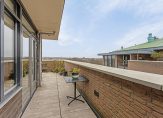 De grote living van ca. 50 m² is licht en ruim, met twee sets openslaande deuren naar een groot dakterras ( 70 m²) rondom het appartement op het oosten en zuiden. De open keuken met kookeiland is voorzien van hoogwaardige inbouwapparatuur, waaronder een koelkast, vriezer, combimagnetron, inductiekookplaat, afzuigkap en vaatwasser. Vernieuwde meterkast.