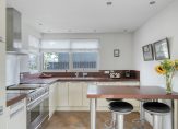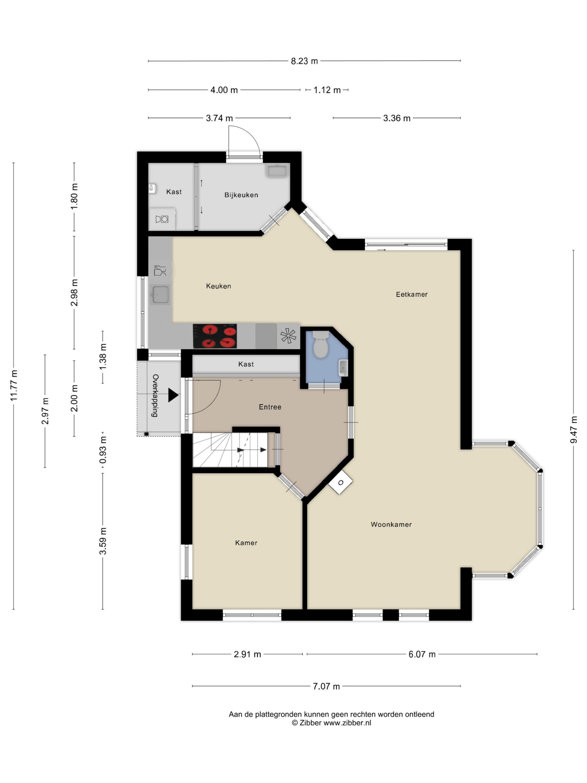 Er is een bijkeuken aanwezig met spoelbak en schuifwand met daar achter een mobiele bergkast en plaats voor de wasmachine en droger. Hier is ook de opstelling voor de cv ketel en hybride warmtepomp.