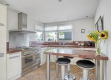 De woning is modern met een ruime woonkeuken, fijne woonkamer met erker en houtkachel. De keuken is goed onderhouden en voorzien van diverse inbouwapparatuur waaronder een “Boretti” gasfornuis 5-pits met grillplaat en 2 elektrische ovens, rvs afzuigkap, quooker, vaatwasser en inbouwkoelkast. Dit is afgewerkt met een Terrazzo composiet werkblad. In de keuken is een bijbehorende eettafel gemaakt met plaats voor 4 personen. De begane grond is voorzien van een mooie plavuizen vloer met vloerverwarming.
