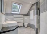 Op de eerste verdieping zijn er 3 grote slaapkamers (waarvan 2 met airco) met inbouwkasten en een luxe badkamer met elektrische vloerverwarming, wastafelmeubel, toilet en douchecabine. Via de vlizotrap is nog een ruime zolder bereikbaar met veel bergruimte.
