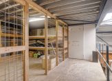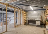 De grote hal voorzien van een overheaddeur en extra loopdeur. De vloeistofdichte betonvloer heeft een draagkracht van 10.000kg !!! per m2. De bedrijfsruimte is deels voorzien van een verdiepingsvloer, welke eenvoudig bereikbaar is via een trap. Hier is een magazijn en een afgescheiden ruimte aanwezig met eenvoudig keukentje met water en stroom, die eventueel als kantoortje gebruikt kan worden. Daar onder bevindt zich een werkruimte, toilet en wasbak. De hal heeft natuurlijk lichtinval door de dubbelwandige lichtstraat op de hal. En natuurlijk is er krachtstroom (3 x 25 Amp) aanwezig.
