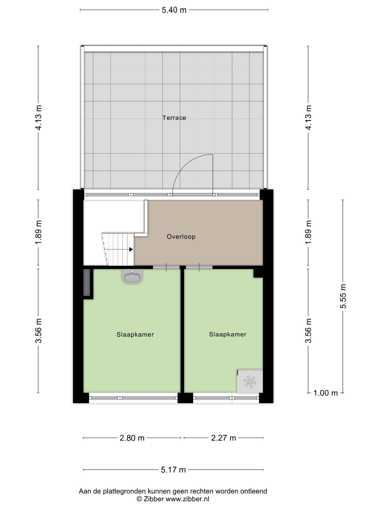 Vaste trap, royale overloop, 2 slaapkamers en dakterras.