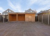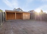 De tuin, gelegen op het oosten, is via een doorgang naast de woning gemakkelijk bereikbaar. De volledig betegelde achtertuin is onderhoudsarm en biedt een prachtige overkapping met berging. Deze tuin is perfect voor gezellige avonden buiten.